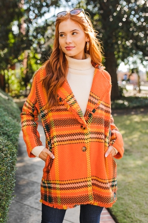 This plaid coat is ultra chic and classic. The longer length pairs well with anything from leggings to dresses. Features a single button closure on the front, a notched collar, and side pockets. Fabric is 100% polyester without stretch.